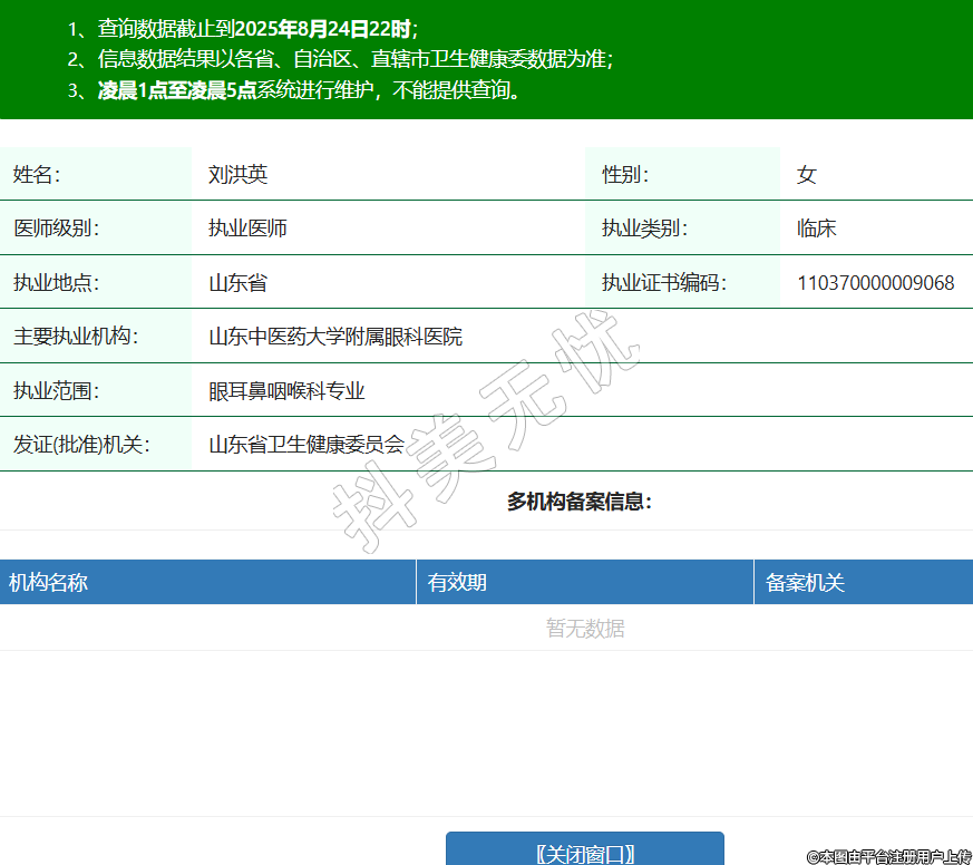 姓名:劉洪英性別:女醫(yī)師級別:執(zhí)業(yè)醫(yī)師執(zhí)業(yè)類別:臨床執(zhí)業(yè)地點(diǎn):山東省執(zhí)業(yè)證書編碼:110370000009068主要執(zhí)業(yè)機(jī)構(gòu):山東中醫(yī)藥大學(xué)附屬眼科醫(yī)院執(zhí)業(yè)范圍:眼耳鼻咽喉科專業(yè)發(fā)證(批準(zhǔn))機(jī)關(guān):山東省衛(wèi)生健康委員會 -