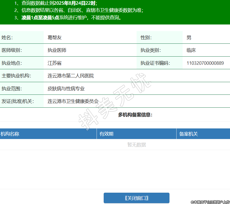 姓名:葛幫友性別:男醫(yī)師級別:執(zhí)業(yè)醫(yī)師執(zhí)業(yè)類別:臨床執(zhí)業(yè)地點:江蘇省執(zhí)業(yè)證書編碼:110320700000889主要執(zhí)業(yè)機構(gòu):連云港市第二人民醫(yī)院執(zhí)業(yè)范圍:皮膚病與性病專業(yè)發(fā)證(批準)機關(guān):連云港市衛(wèi)生健康委員會