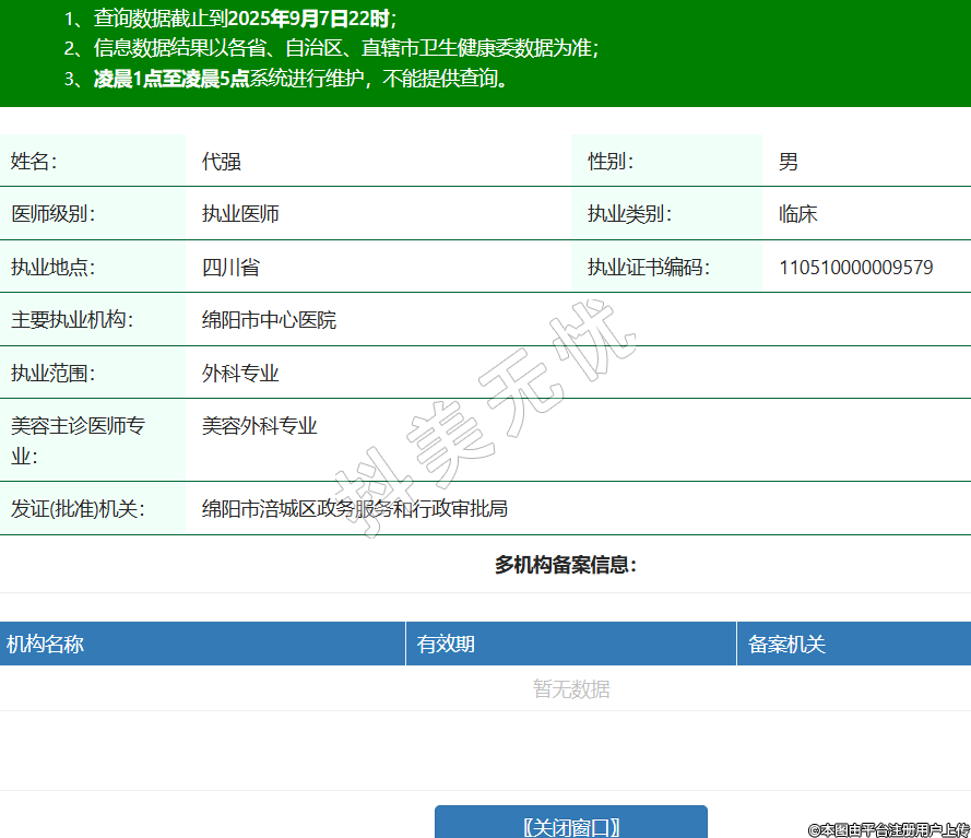 姓名:代強(qiáng)性別:男醫(yī)師級(jí)別:執(zhí)業(yè)醫(yī)師執(zhí)業(yè)類別:臨床執(zhí)業(yè)地點(diǎn):四川省執(zhí)業(yè)證書編碼:110510000009579主要執(zhí)業(yè)機(jī)構(gòu):綿陽市中心醫(yī)院執(zhí)業(yè)范圍:外科專業(yè)美容主診醫(yī)師專業(yè):美容外科專業(yè)發(fā)證(批準(zhǔn))機(jī)關(guān):綿陽市涪城區(qū)政務(wù)服務(wù)和行政審批局 -