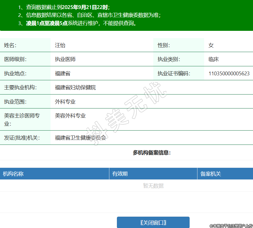 姓名:汪怡性別:女醫(yī)師級別:執(zhí)業(yè)醫(yī)師執(zhí)業(yè)類別:臨床執(zhí)業(yè)地點:福建省執(zhí)業(yè)證書編碼:110350000005623主要執(zhí)業(yè)機構(gòu):福建省婦幼保健院執(zhí)業(yè)范圍:外科專業(yè)美容主診醫(yī)師專業(yè):美容外科專業(yè)發(fā)證(批準)機關(guān):福建省衛(wèi)生健康委員會 -