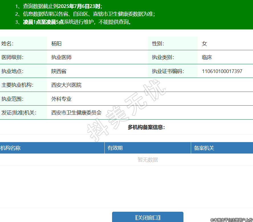 姓名:楊陽(yáng)性別:女醫(yī)師級(jí)別:執(zhí)業(yè)醫(yī)師執(zhí)業(yè)類(lèi)別:臨床執(zhí)業(yè)地點(diǎn):陜西省執(zhí)業(yè)證書(shū)編碼:110610100017397主要執(zhí)業(yè)機(jī)構(gòu):西安大興醫(yī)院執(zhí)業(yè)范圍:外科專(zhuān)業(yè)發(fā)證(批準(zhǔn))機(jī)關(guān):西安市衛(wèi)生健康委員會(huì) -