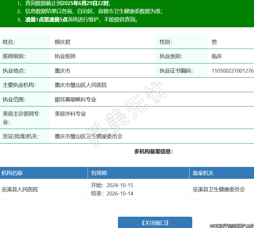 姓名:柳慶君性別:男醫(yī)師級別:執(zhí)業(yè)醫(yī)師執(zhí)業(yè)類別:臨床執(zhí)業(yè)地點(diǎn):重慶市執(zhí)業(yè)證書編碼:110500227001276主要執(zhí)業(yè)機(jī)構(gòu):重慶市璧山區(qū)人民醫(yī)院執(zhí)業(yè)范圍:眼耳鼻咽喉科專業(yè)美容主診醫(yī)師專業(yè):美容外科專業(yè)發(fā)證(批準(zhǔn))機(jī)關(guān):重慶市璧山區(qū)衛(wèi)生健康委員會多機(jī)構(gòu)備案信息: