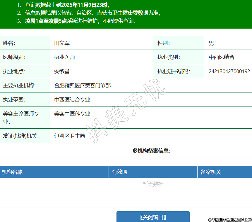 姓名:田文軍性別:男醫(yī)師級別:執(zhí)業(yè)醫(yī)師執(zhí)業(yè)類別:中西醫(yī)結(jié)合執(zhí)業(yè)地點:安徽省執(zhí)業(yè)證書編碼:242130427000192主要執(zhí)業(yè)機構(gòu):合肥蕥典醫(yī)療美容門診部執(zhí)業(yè)范圍:中西醫(yī)結(jié)合專業(yè)美容主診醫(yī)師專業(yè):美容中醫(yī)科專業(yè)發(fā)證(批準)機關:包河區(qū)衛(wèi)生局 -