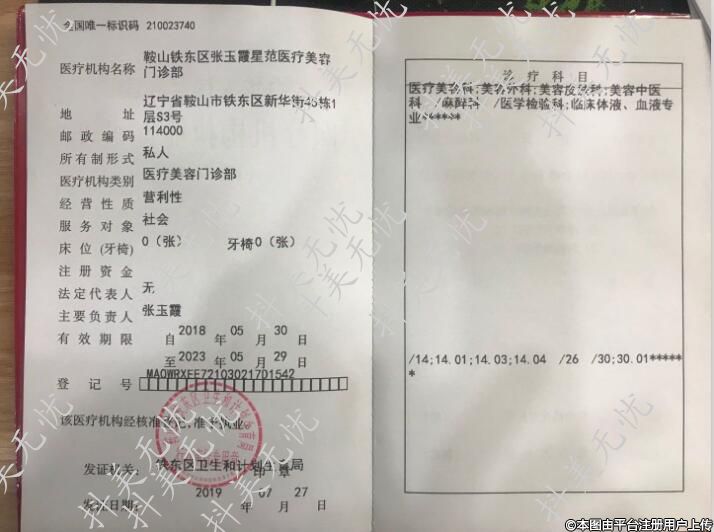 醫(yī)療機(jī)構(gòu)名稱:鞍山鐵東區(qū)張玉霞星范醫(yī)療美容門診部