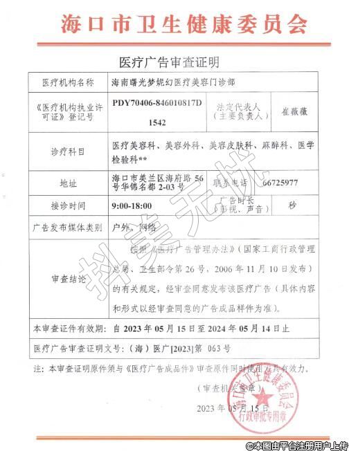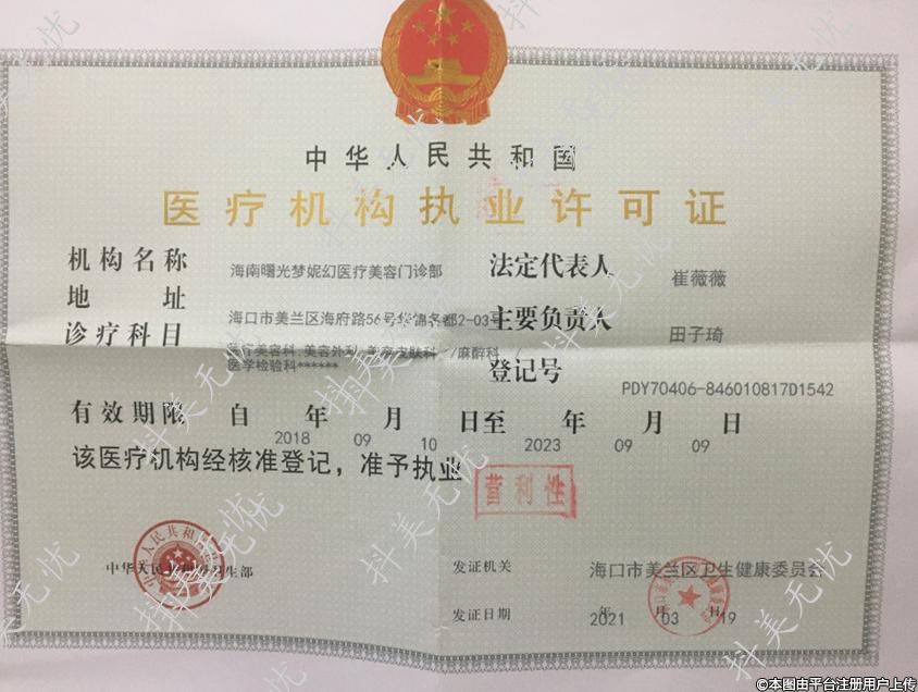 機構(gòu)名稱:海南曙光夢妮幻醫(yī)療美容門診部