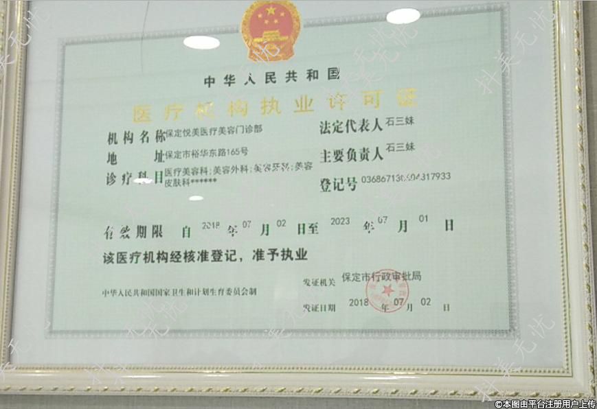 機構(gòu)名稱:保定悅美醫(yī)療美容門診部