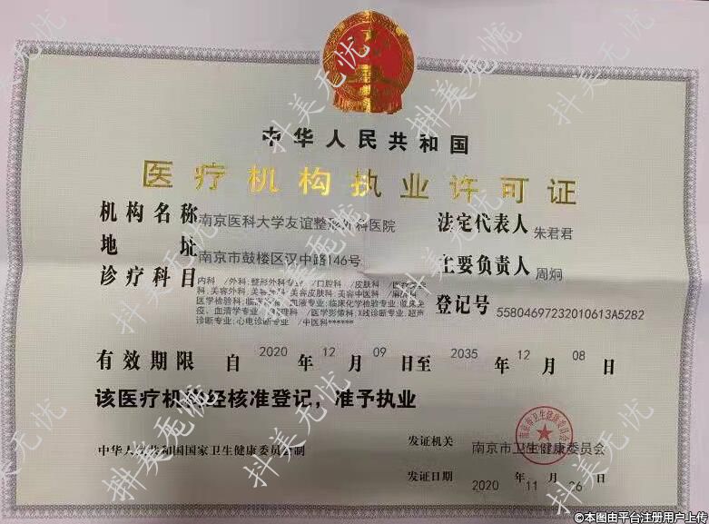 發(fā)證機關:南京衛(wèi)生健康委員會