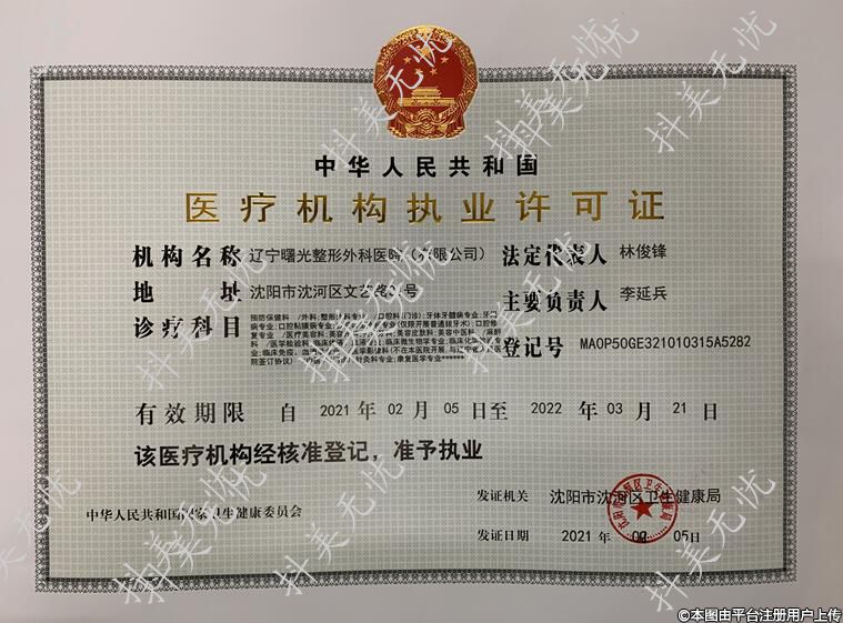 機構名稱:遼寧曙光整形外科醫(yī)院(有限公司)