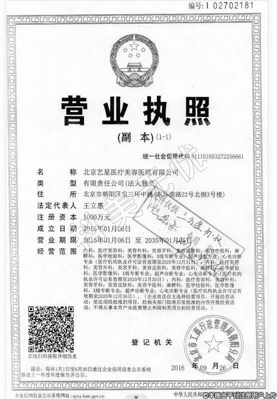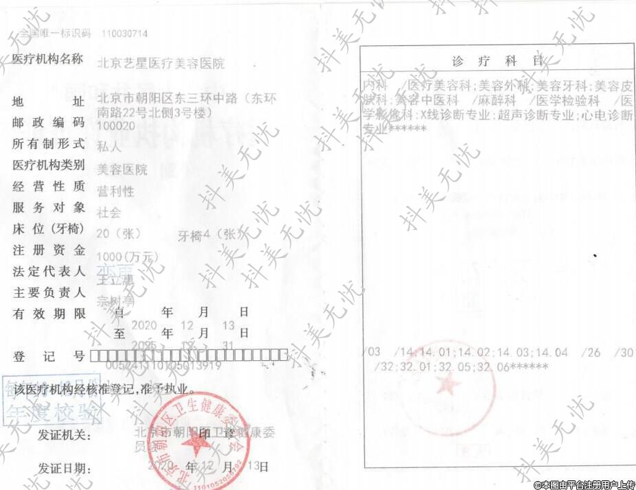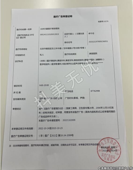 醫(yī)療機(jī)構(gòu)名稱:北京藝星醫(yī)療美容醫(yī)院
