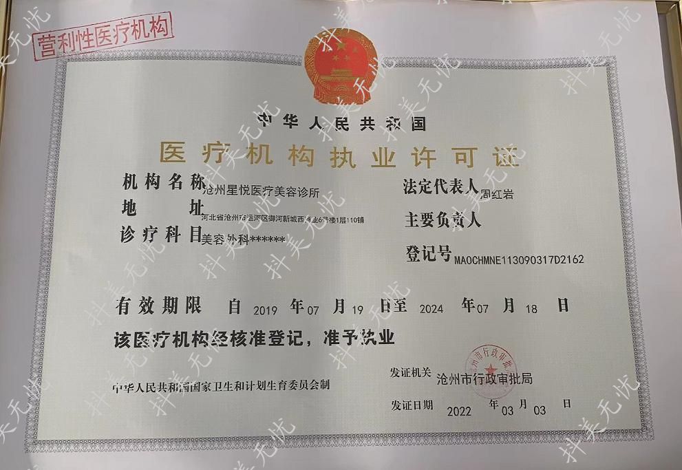 機構(gòu)名稱:滄州星悅醫(yī)療美容診所