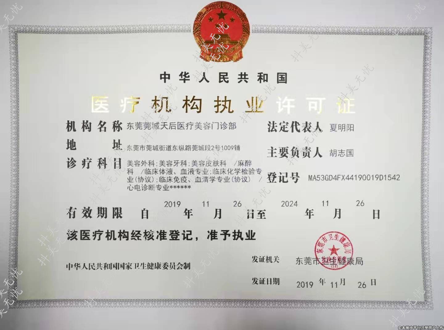 機(jī)構(gòu)名稱:東莞莞城天后醫(yī)療美容門診部