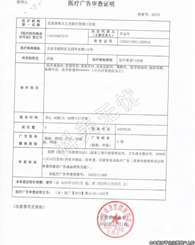 機(jī)構(gòu)名稱:北京潤美玉之光醫(yī)療美容門診部