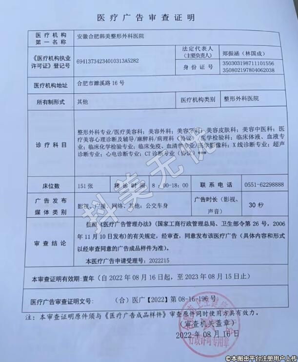 醫(yī)療機構(gòu)名稱:安徽合肥韓美整形外科醫(yī)院