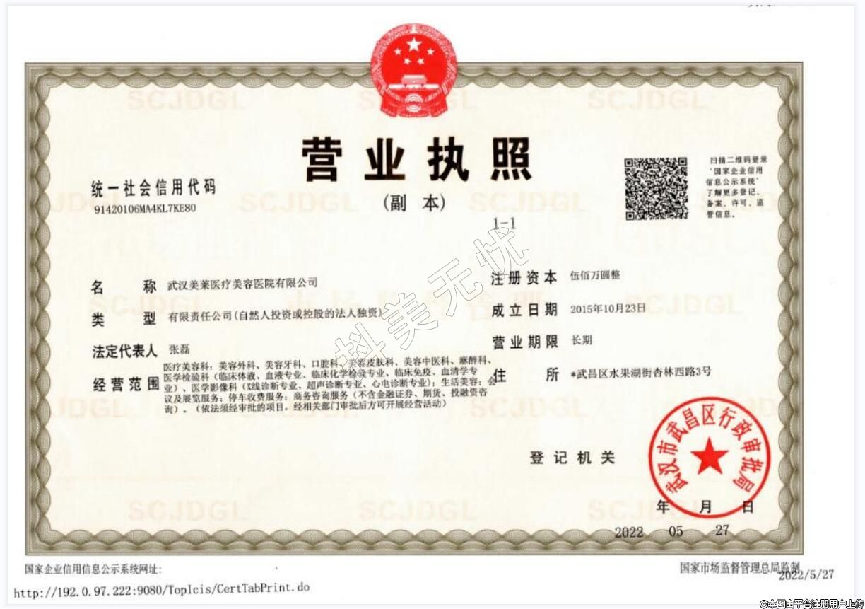 機構名稱:武漢美萊醫(yī)療美容醫(yī)院