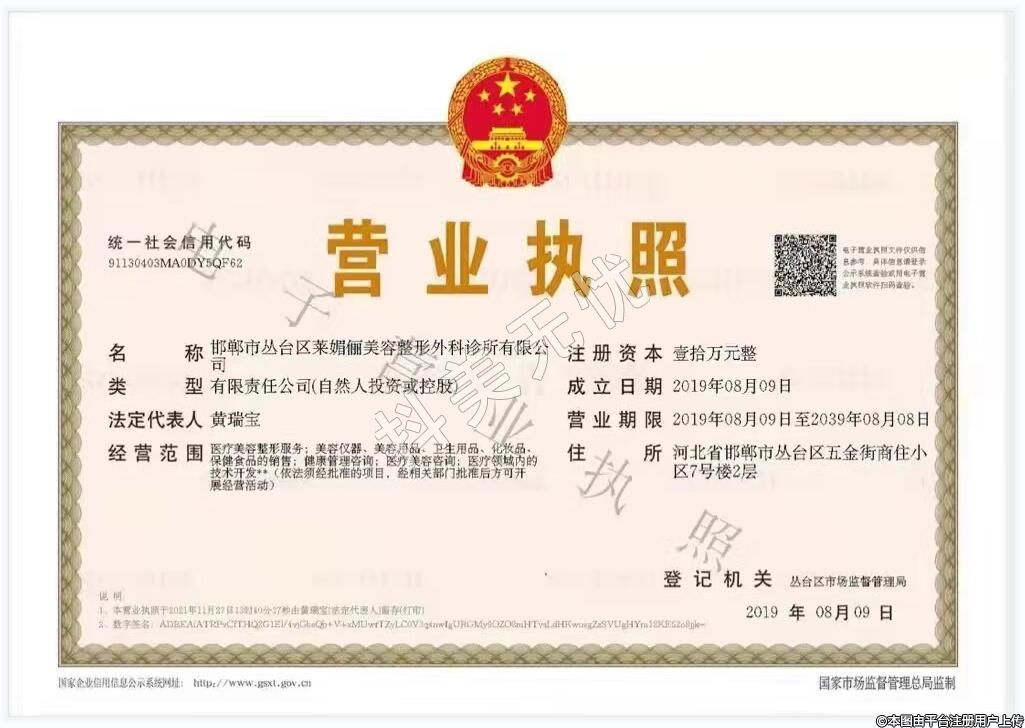 發(fā)證機(jī)關(guān):邯鄲市叢臺(tái)區(qū)行政審批局