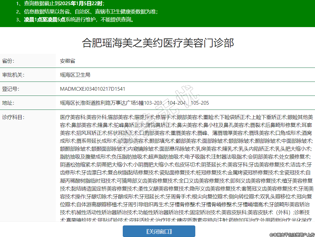 醫(yī)療美容科;美容外科;眉部美容術(shù);眉提升術(shù);修眉手術(shù);眼部美容術(shù);重瞼術(shù);下瞼袋矯正術(shù);上瞼下垂矯正術(shù);眼瞼其他美容術(shù);鼻部美容術(shù);隆鼻術(shù);駝峰鼻矯正術(shù);鷹鉤鼻矯正術(shù);鼻尖美容術(shù);鼻小柱及鼻孔美容術(shù);唇裂術(shù)后鼻畸形修復(fù)術(shù);耳廓美容術(shù);招風(fēng)耳矯正術(shù);杯狀耳矯正術(shù);口唇部美容術(shù);重唇美容術(shù);唇峰、薄唇增厚美容術(shù);唇珠美容術(shù);口角成形術(shù);酒窩成形術(shù);唇系帶延長成形術(shù);頜面部美容術(shù);顳部填充術(shù);顴部美容術(shù);面部除皺術(shù);額部除皺術(shù);顳部除皺術(shù);中面部除皺術(shù);額顳部除皺術(shù);額顳面部除皺術(shù);內(nèi)窺鏡除皺術(shù);面部懸吊除皺術(shù);乳房美容術(shù);隆乳術(shù);乳頭內(nèi)陷矯正術(shù);乳頭肥大縮小術(shù);脂肪抽吸及腹壁成形術(shù);負(fù)壓脂肪抽吸術(shù);超聲脂肪抽吸術(shù);電子吸脂術(shù);注射器法吸脂術(shù);會陰部美容術(shù);處女膜修復(fù)術(shù);陰道松弛縮緊術(shù);陰蒂肥大縮小術(shù);小陰唇肥大縮小術(shù);包皮環(huán)切術(shù);陰莖延長術(shù);美容牙科;牙齒美容修復(fù)技術(shù);潔齒術(shù);牙齒修形術(shù);牙齒漂白術(shù);復(fù)合樹脂黏結(jié)修復(fù)技術(shù);瓷貼面修復(fù)技術(shù);樁冠修復(fù)技術(shù);金屬烤瓷冠橋修復(fù)技術(shù);全瓷冠技術(shù);自凝丙稀酸樹脂臨時冠技術(shù);可摘局部義齒美容修復(fù)技術(shù);全口義齒美容修復(fù)技術(shù);即刻義齒美容修復(fù)技術(shù);植牙美容修復(fù)技術(shù);黏結(jié)鑄造固定橋美容修復(fù)技術(shù);柔性義齦美容修復(fù)技術(shù);隱形義齒美容修復(fù)技術(shù);套筒冠義齒美容修復(fù)技術(shù);牙周美容技術(shù)操作;牙齦切除術(shù);牙齦成形術(shù);牙冠延長術(shù);牙周骨手術(shù);根尖向復(fù)位瓣術(shù);側(cè)向轉(zhuǎn)位瓣術(shù);雙乳頭瓣移位術(shù);冠向復(fù)位瓣術(shù);自體游離齦瓣移植術(shù);牙周引導(dǎo)組織再生術(shù);牙槽骨修整術(shù);牙槽骨嵴修整術(shù);牙槽嵴增高術(shù);牙頜畸形美容矯治技術(shù);機(jī)械性活動性矯治器矯治技術(shù);功能性矯治器矯治技術(shù);固定矯治技術(shù);美容皮膚科;美容皮膚術(shù)(外科);診斷技術(shù);真菌鏡檢技術(shù);斑貼試驗(yàn)技術(shù);皮膚活檢術(shù);治療技術(shù);糖皮質(zhì)激素皮損內(nèi)注射;藥物加壓治療;外用藥物治療;光化學(xué)療法;美容皮膚術(shù)(內(nèi)科);皮膚磨削術(shù);酒渣鼻切割術(shù);皮膚腫物切除術(shù);拔甲術(shù);刮除術(shù);自體表皮移植術(shù);腋臭手術(shù);足病修治術(shù);毛發(fā)移植術(shù);美容醫(yī)療應(yīng)用技術(shù);物理美容治療術(shù);激光美容治療術(shù);高頻電美容治療;冷凍美容治療;其他物理美容治療;脫毛術(shù);穿耳孔術(shù);注射美容技術(shù);A型肉毒毒素美容注射技術(shù);皮膚(軟組織)注射(填充)美容;美容文飾技術(shù);文眉技術(shù);文眼線技術(shù);文唇技術(shù) | 麻醉科 | 醫(yī)學(xué)檢驗(yàn)科(協(xié)議)******