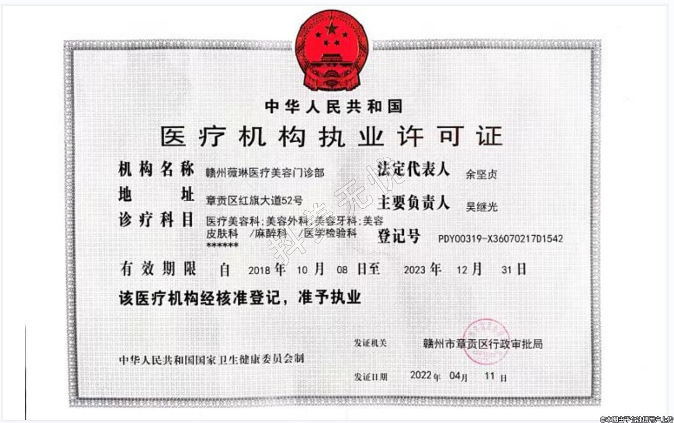 機(jī)構(gòu)名稱(chēng):贛州薇琳醫(yī)療美容門(mén)診部