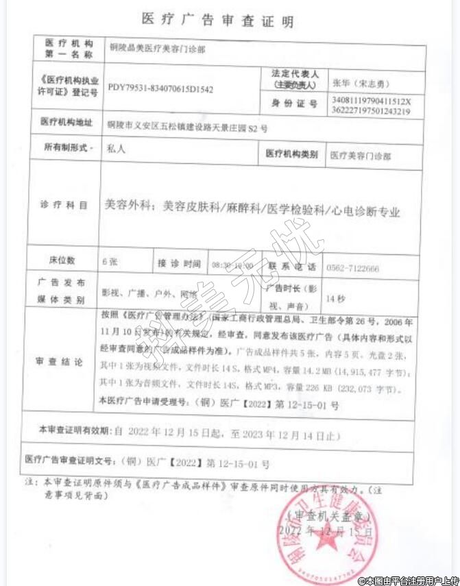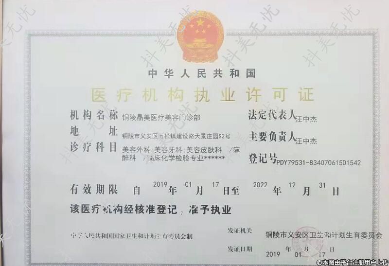機(jī)構(gòu)名稱:銅陵晶美醫(yī)療美容門(mén)診部
