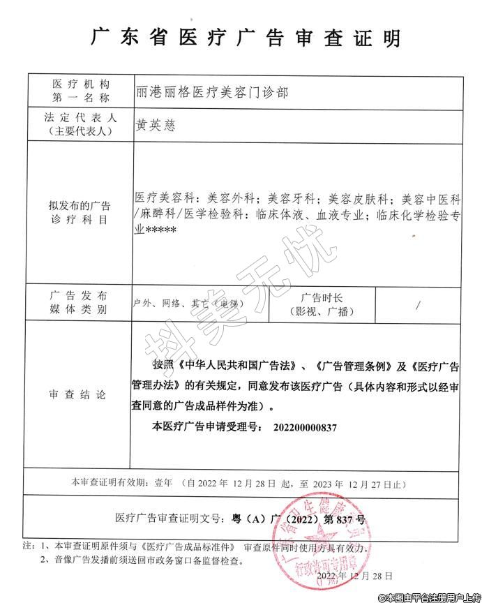 機構名稱:麗港麗格醫(yī)療美容門診部