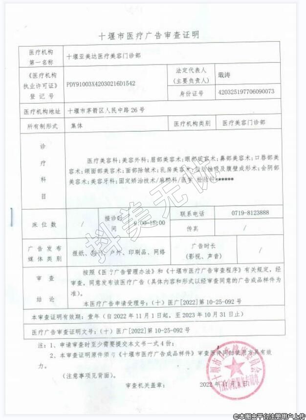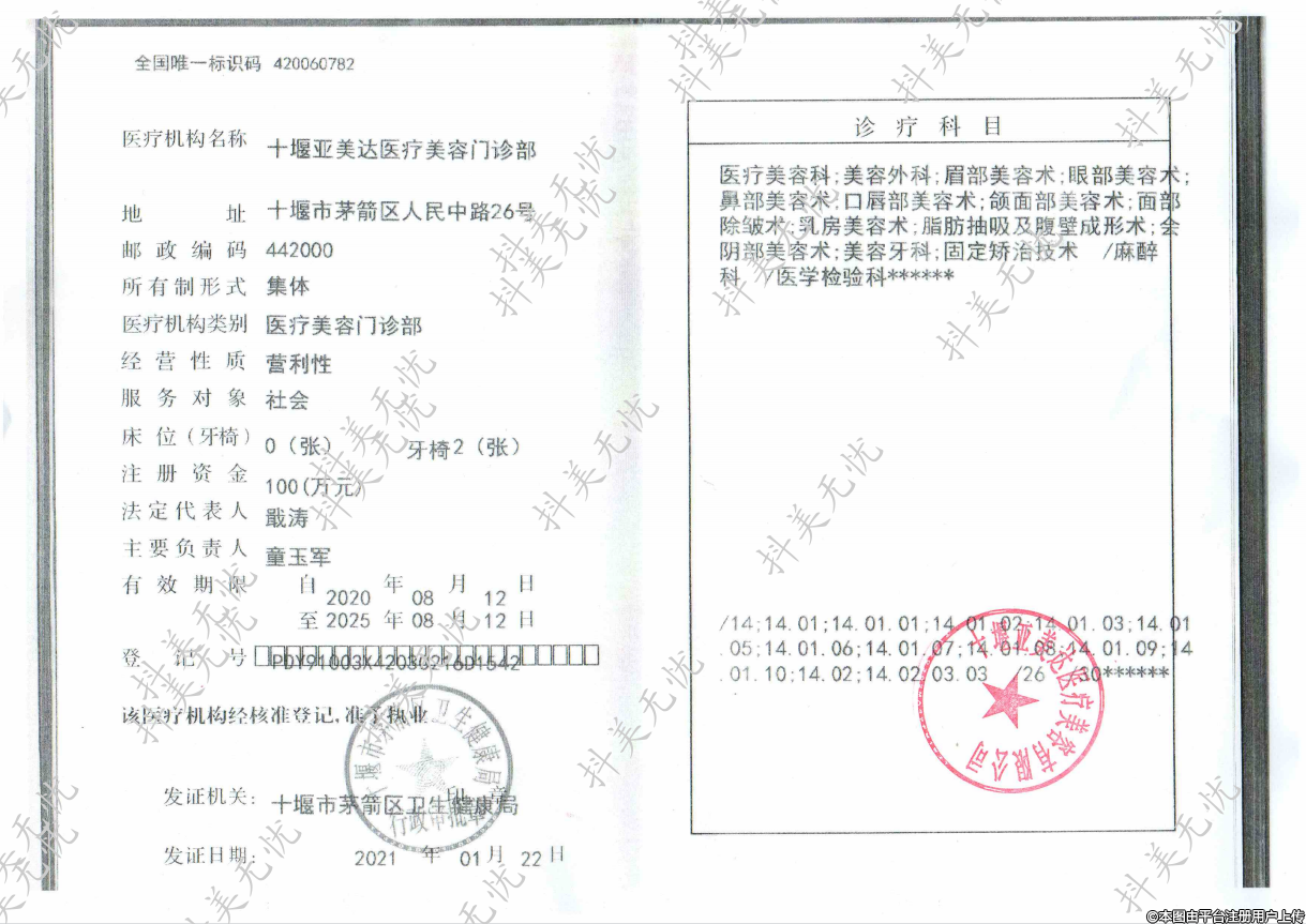 醫(yī)療機構(gòu)名稱:十堰亞美達醫(yī)療美容門診部