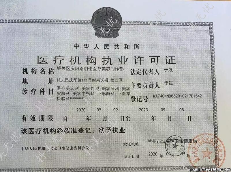 機(jī)構(gòu)名稱:城關(guān)區(qū)慶陽(yáng)路明倫醫(yī)療美容門診部