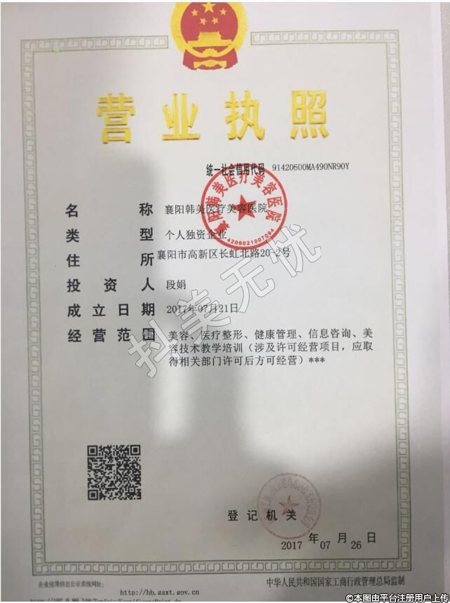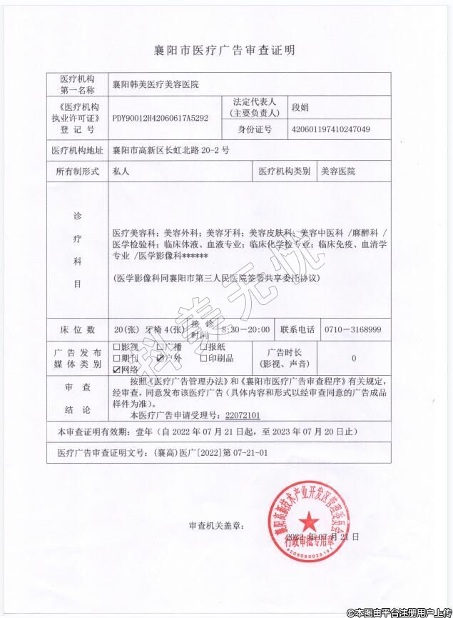 醫(yī)療機(jī)構(gòu)名稱:襄陽韓美醫(yī)療美容醫(yī)院