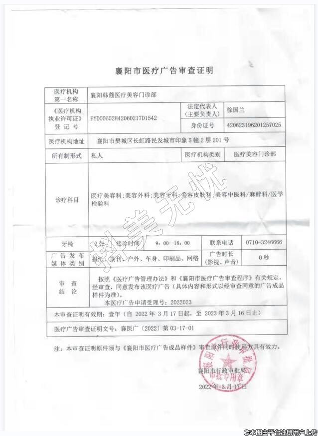 醫(yī)療機構(gòu)名稱:襄陽韓蔻醫(yī)療美容門診部