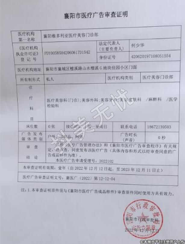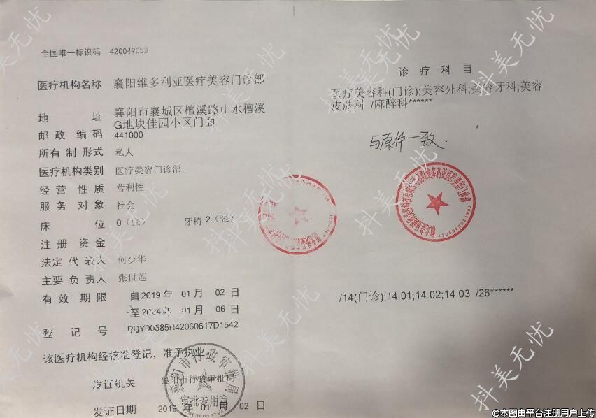 醫(yī)療機構(gòu)名稱:襄陽維多利亞醫(yī)療美容門診部