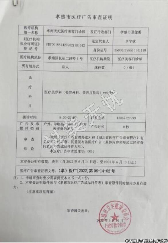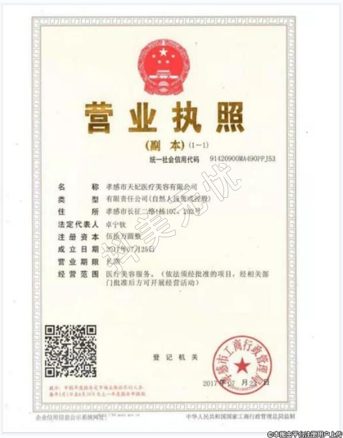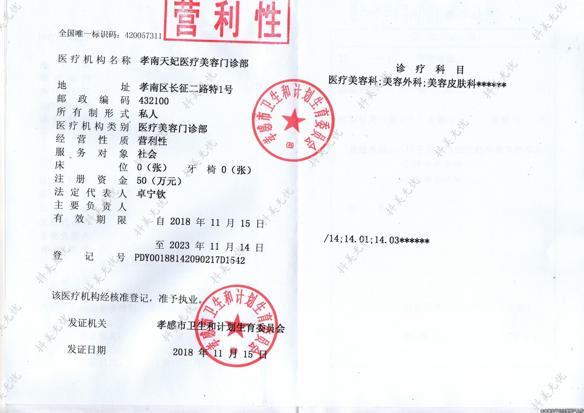 醫(yī)療機(jī)構(gòu)名稱:孝感天妃醫(yī)療美容門診部