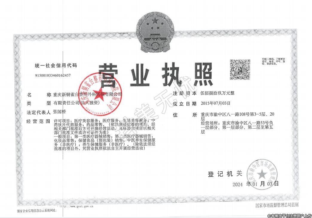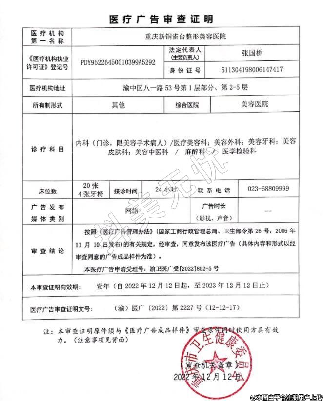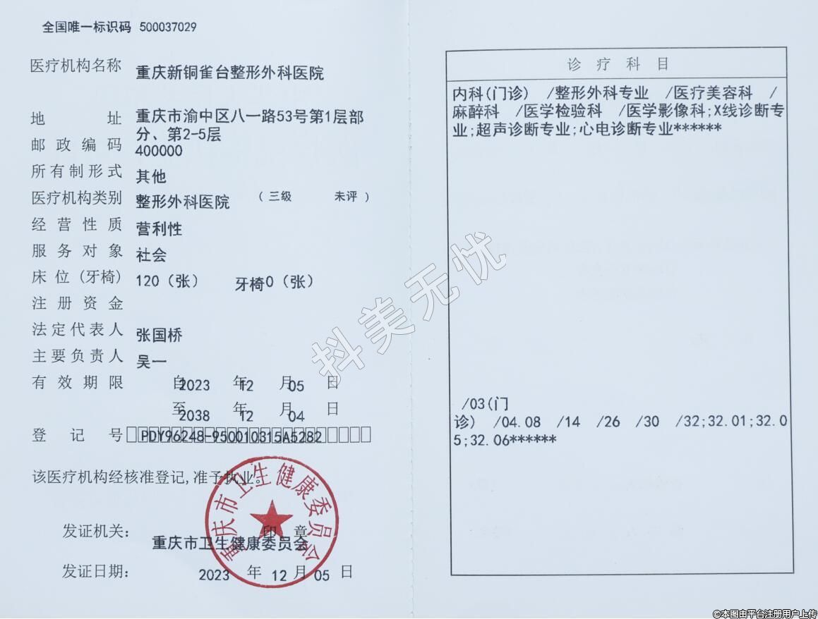 醫(yī)療機(jī)構(gòu)名稱(chēng):重慶新銅雀臺(tái)整形外科醫(yī)院