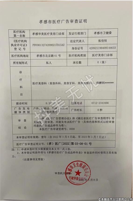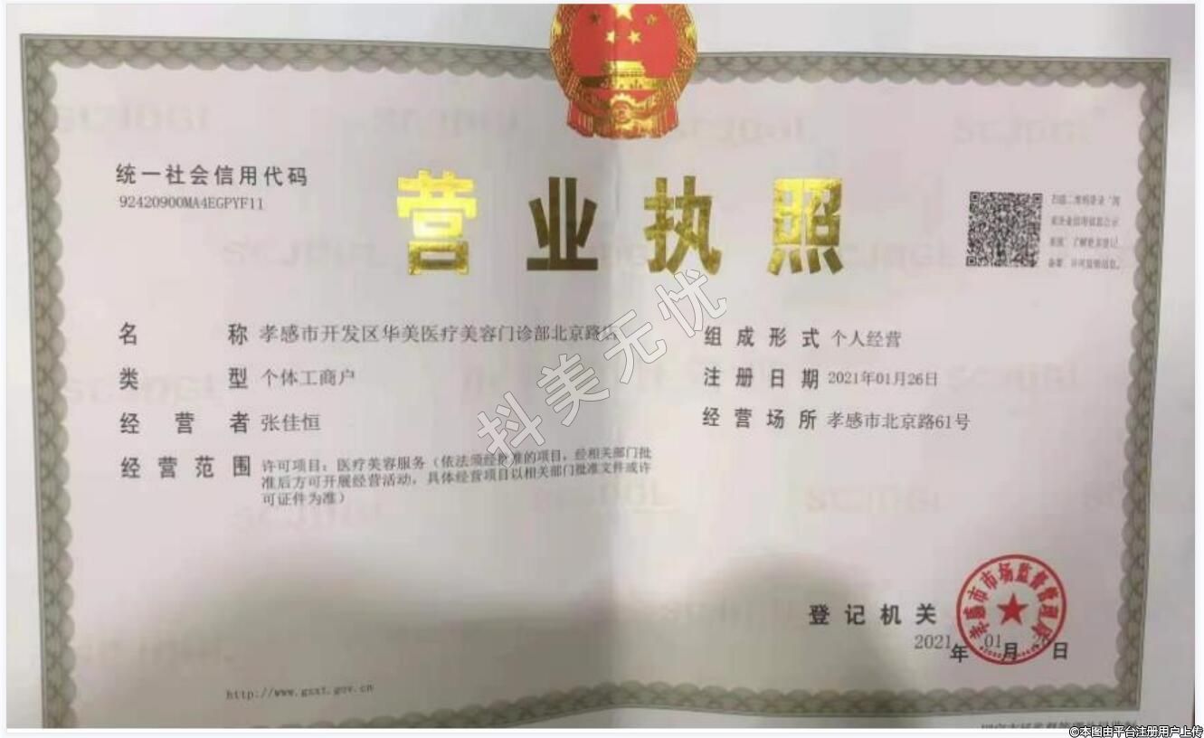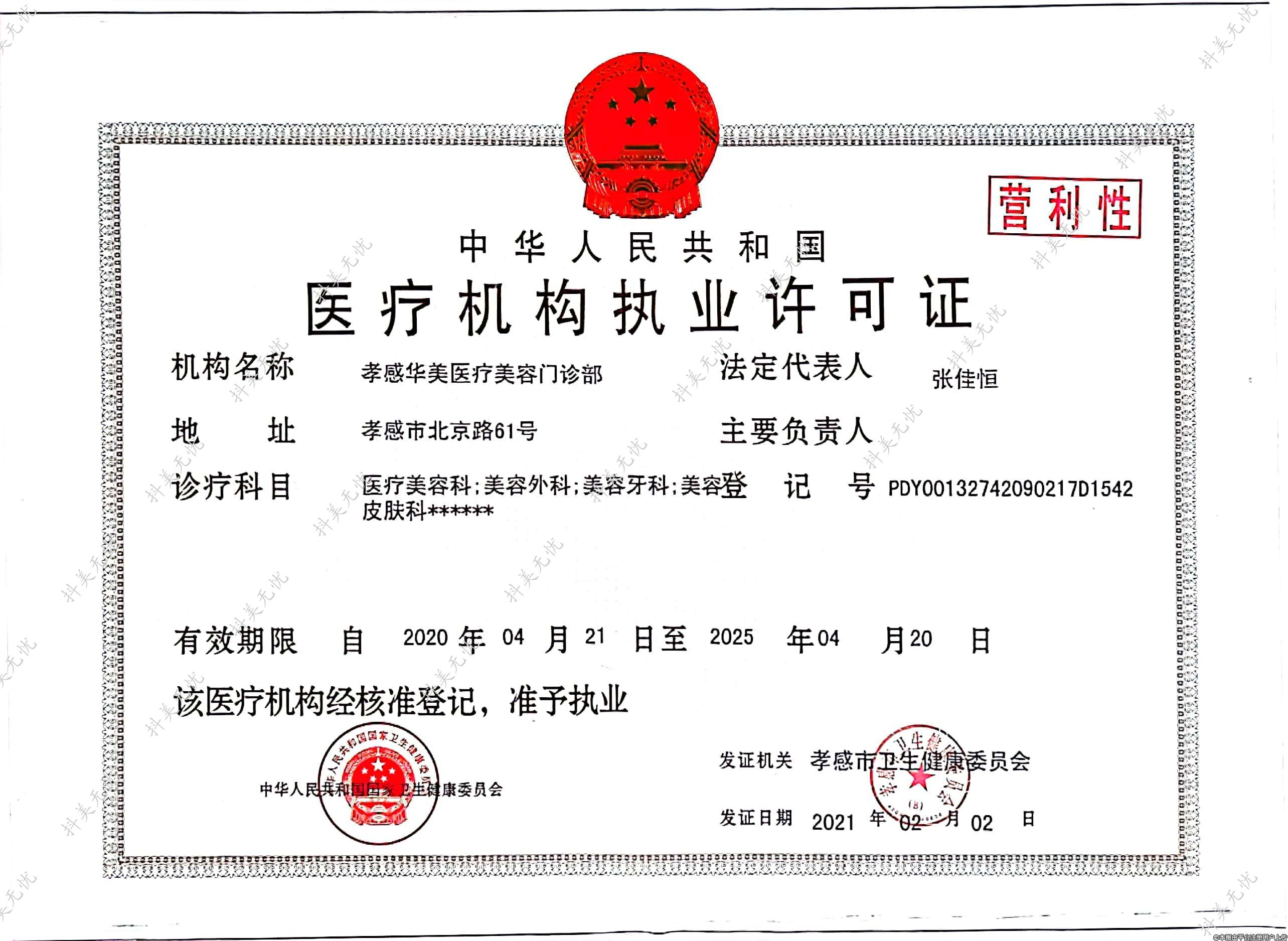 醫(yī)療機(jī)構(gòu)名稱:孝感華美醫(yī)療美容門診部