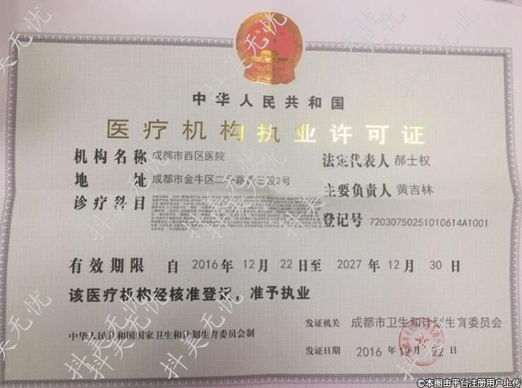 發(fā)證機關(guān):成都市衛(wèi)生和計劃生育委員會