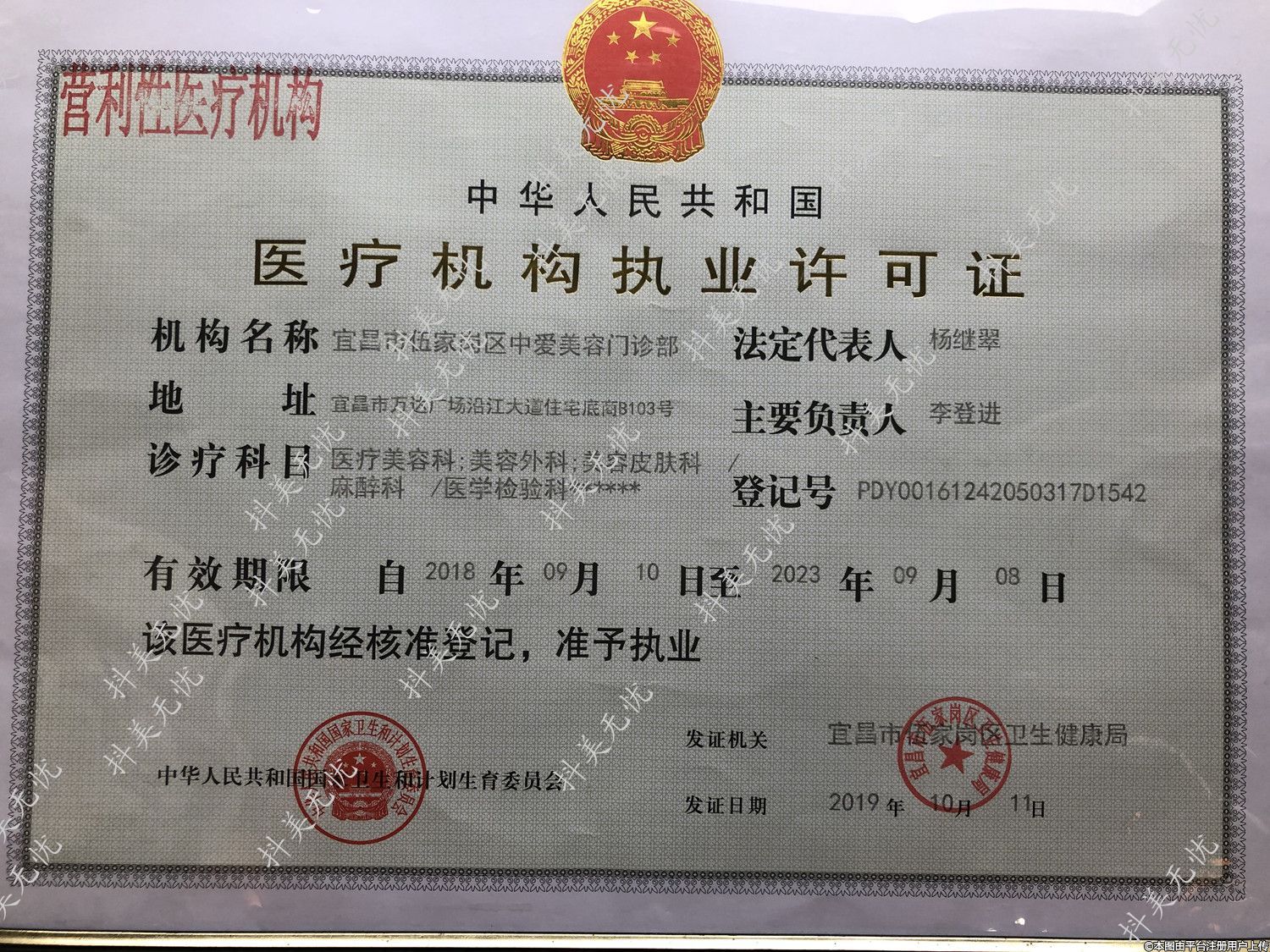 醫(yī)療機(jī)構(gòu)名稱(chēng):宜昌市伍家崗區(qū)中愛(ài)美容門(mén)診部