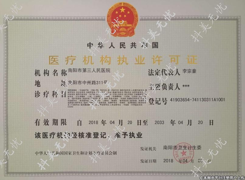 發(fā)證機關(guān):南陽市衛(wèi)生計生委