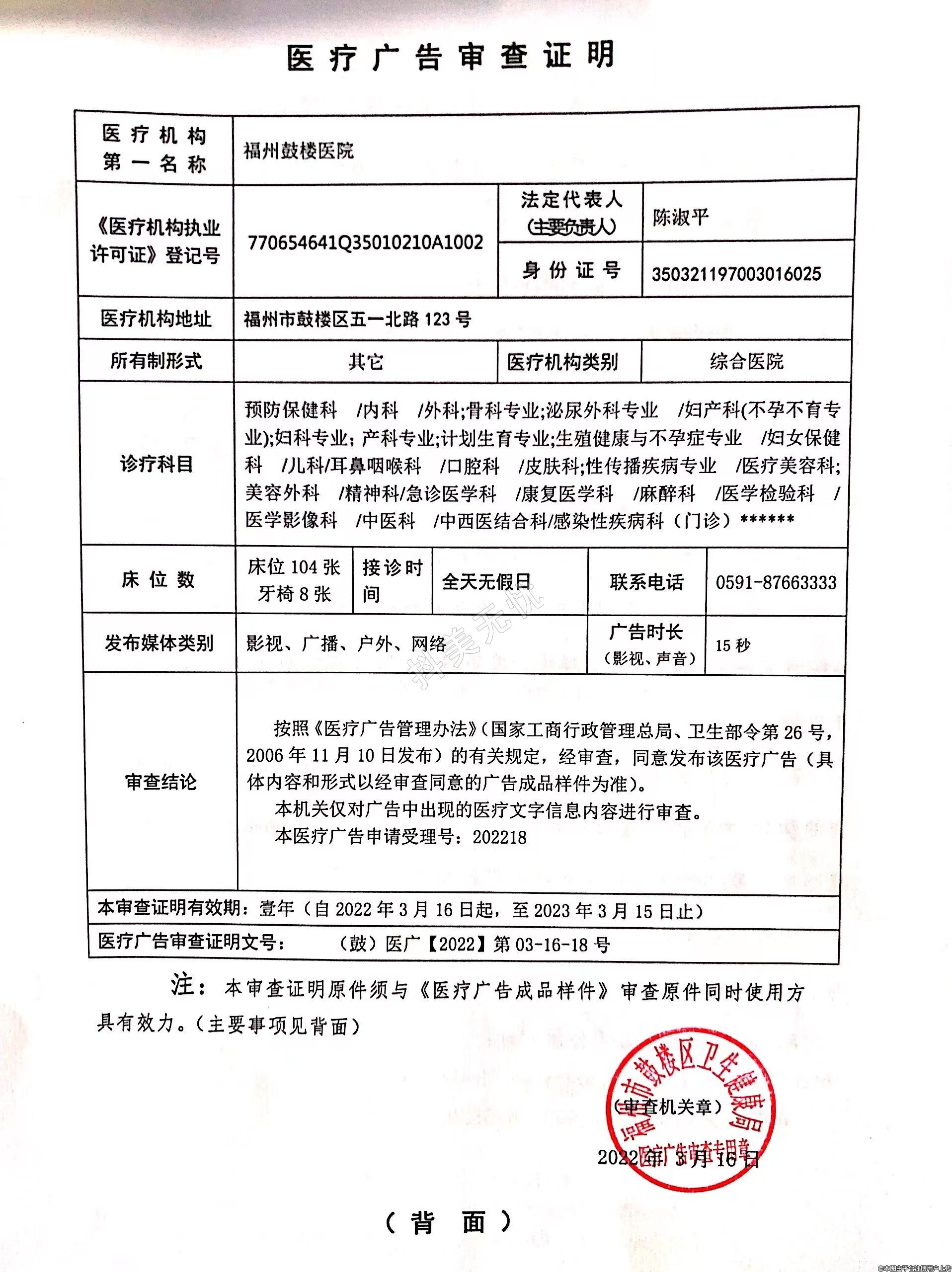發(fā)證機關:福州市發(fā)樓區(qū)三生健康局