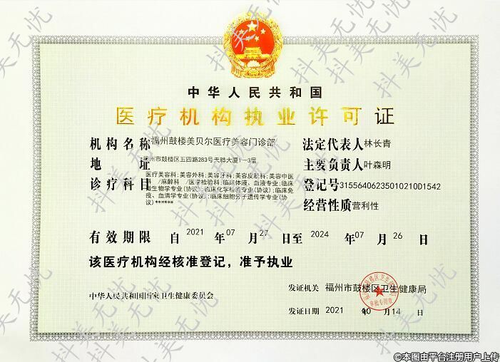 發(fā)證機關(guān):福州市鼓樓區(qū)衛(wèi)生健康局