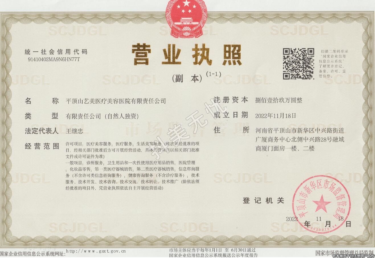 發(fā)證機關(guān):平頂山市衛(wèi)生健康委員會