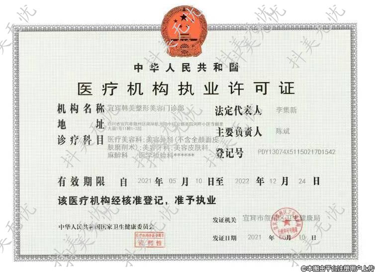 機構(gòu)名稱:宜賓韓美整形美容門診部