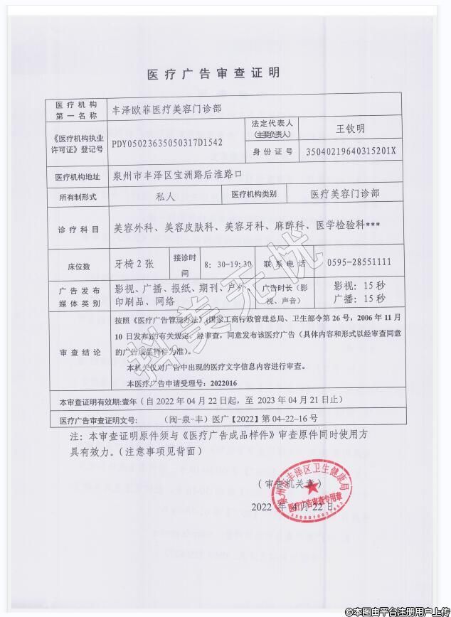 機(jī)構(gòu)名稱:豐澤歐菲醫(yī)療美容門診部