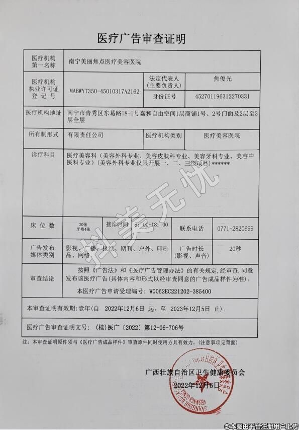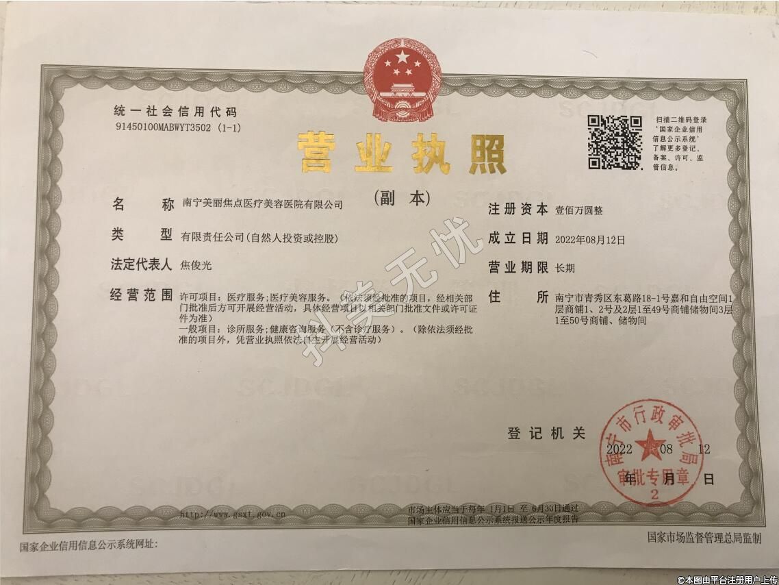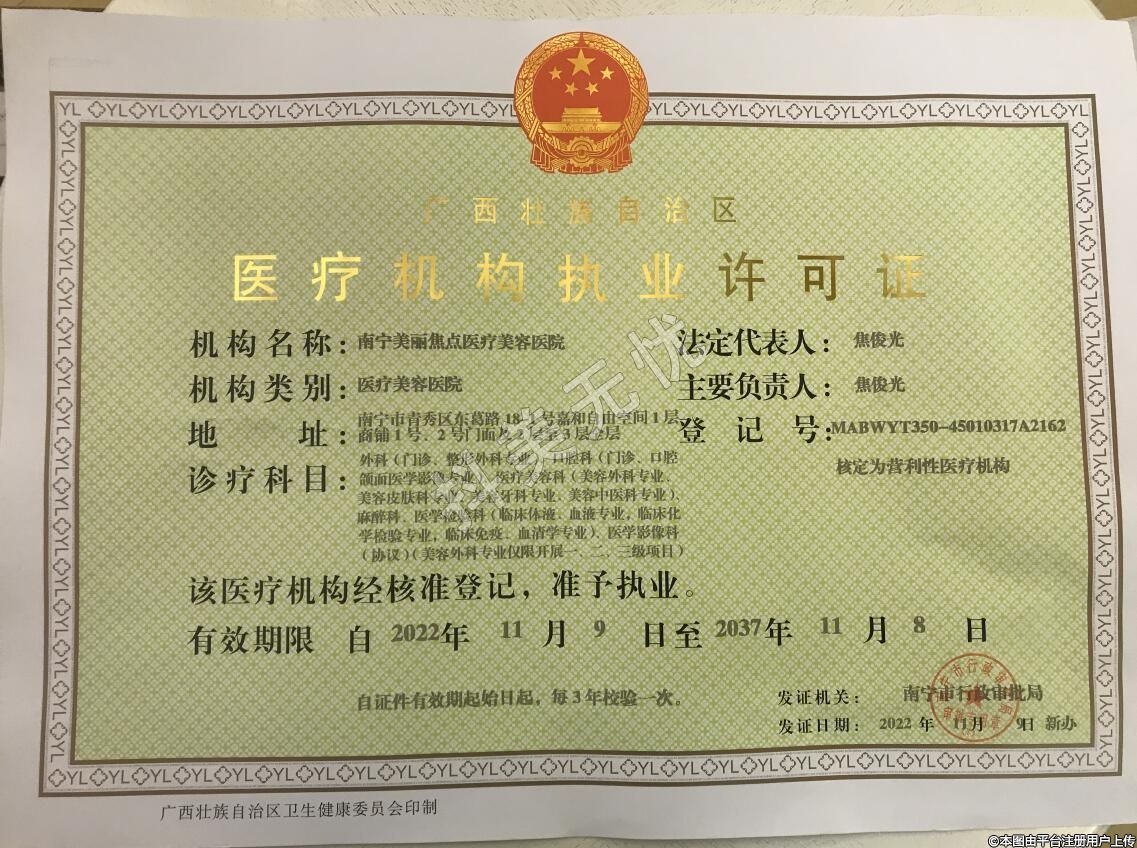 醫(yī)療機(jī)構(gòu)名稱:南寧美麗焦點(diǎn)醫(yī)療美容醫(yī)院