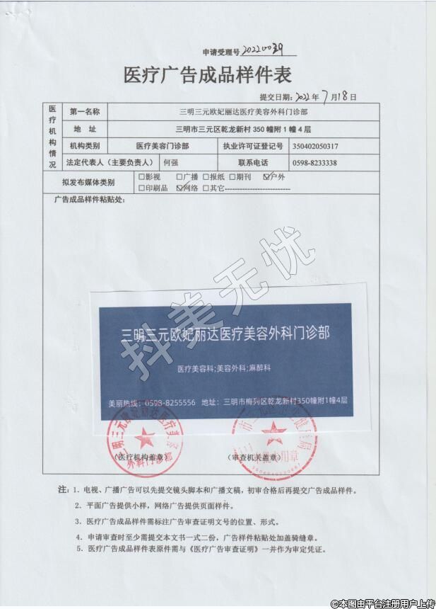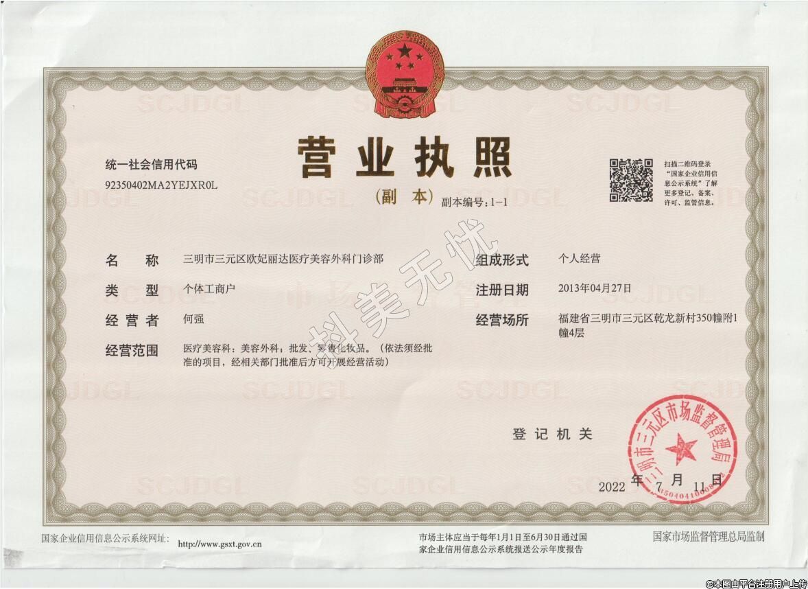 機構(gòu)名稱:三明三元歐妃麗達醫(yī)療美容外科門診部