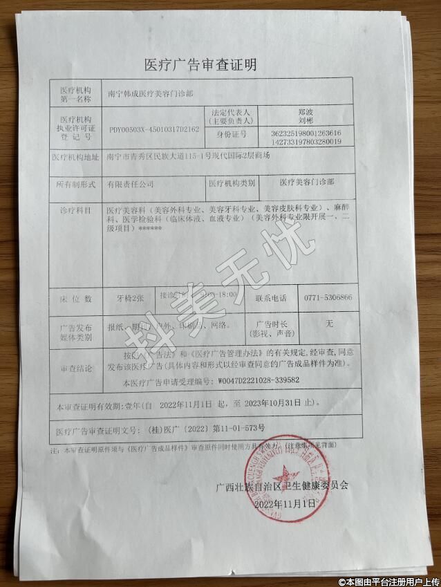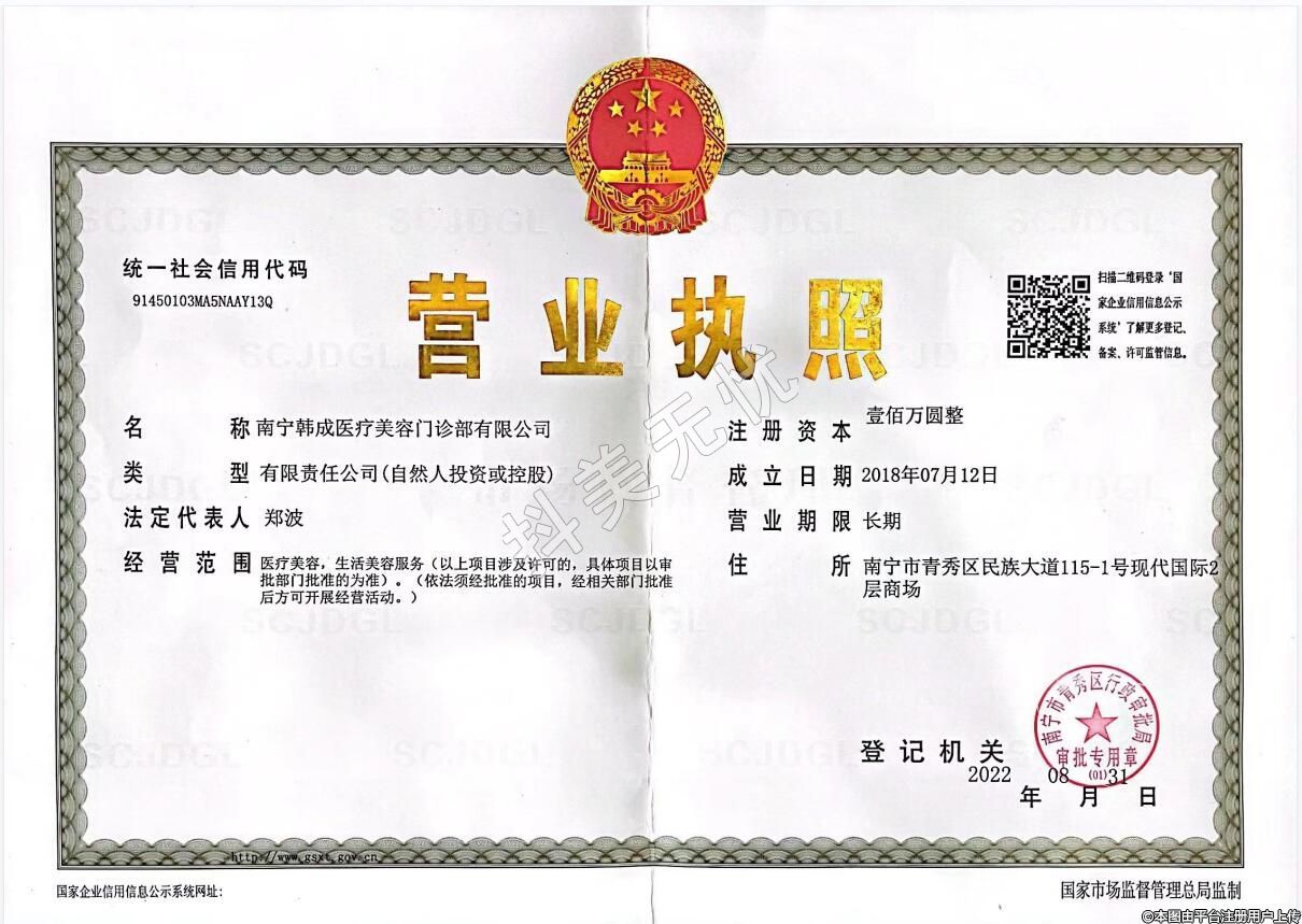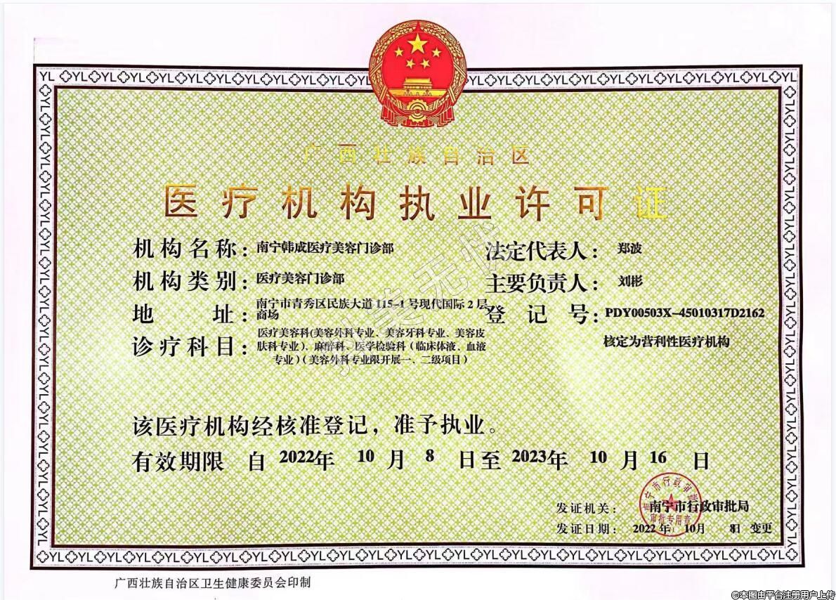 醫(yī)療機(jī)構(gòu)名稱:南寧韓成醫(yī)療美容門診部