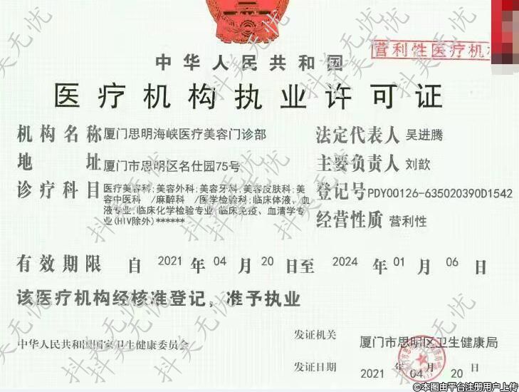 機(jī)構(gòu)名稱:廈門思明海峽醫(yī)療美容門診部