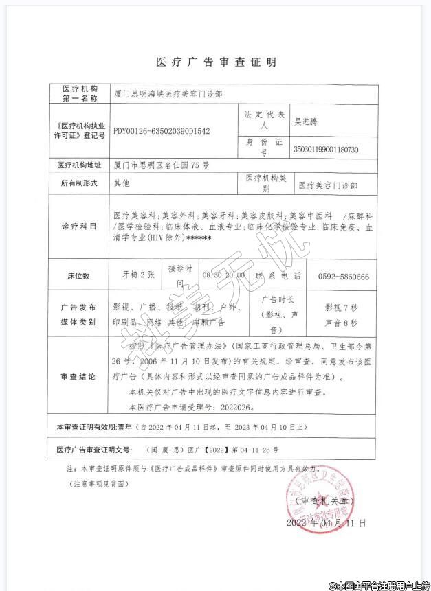 發(fā)證機(jī)關(guān):廈門市思明區(qū)衛(wèi)生健康局