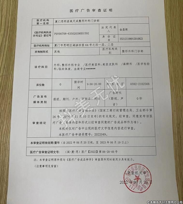 發(fā)證機(jī)關(guān):廈門市思明區(qū)衛(wèi)生健康局