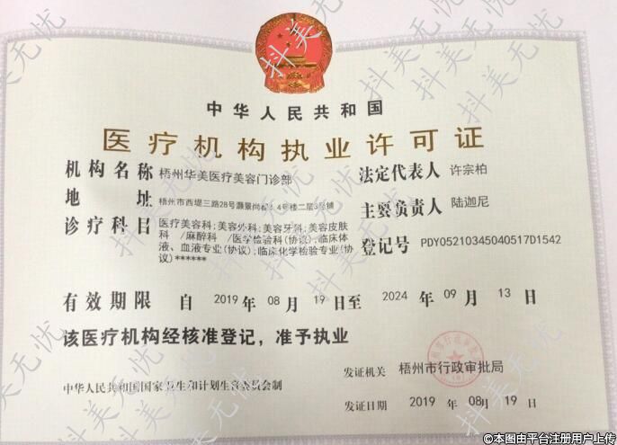 機構(gòu)名稱:梧州華美醫(yī)療美容門診部