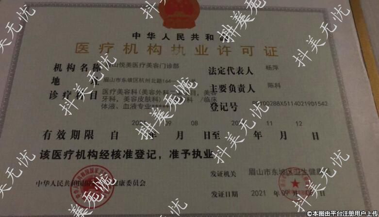 機(jī)構(gòu)名稱:眉山悅美醫(yī)療美容門(mén)診部