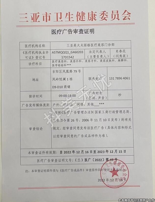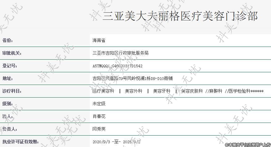 機(jī)構(gòu)名稱:三亞美大夫麗格醫(yī)療美容門診部