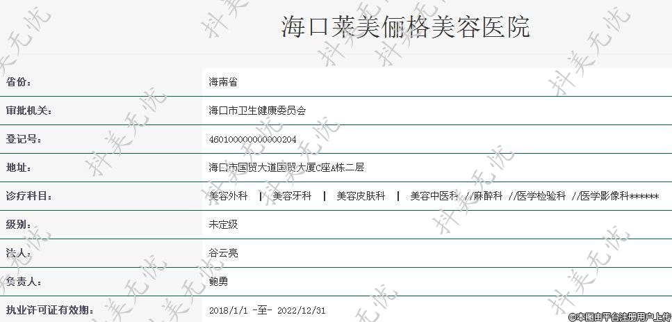 機(jī)構(gòu)名稱:??谌R美儷格美容醫(yī)院