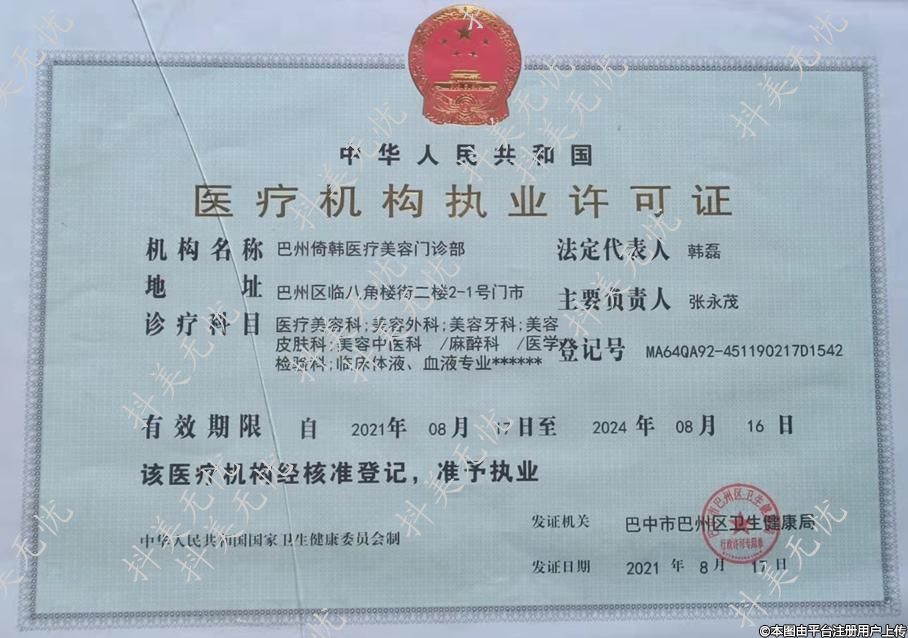 機構(gòu)名稱:巴州倚韓醫(yī)療美容門診部